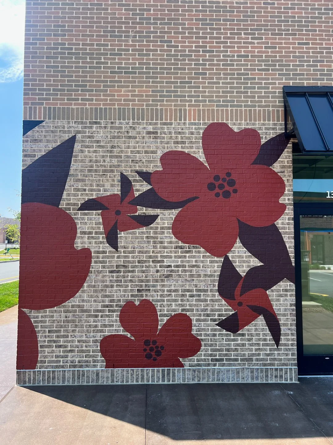 Gabriel Pons was contracted to install his third mural at Embrey Mill Town Center in Stafford, Virginia in June 2025. This mural initiative is part of the developer’s master plan to adorn several key “gateway” entrances into the new shopping complex that celebrate the region’s unique character incorporating native floral elements like the dogwood tree blossom.